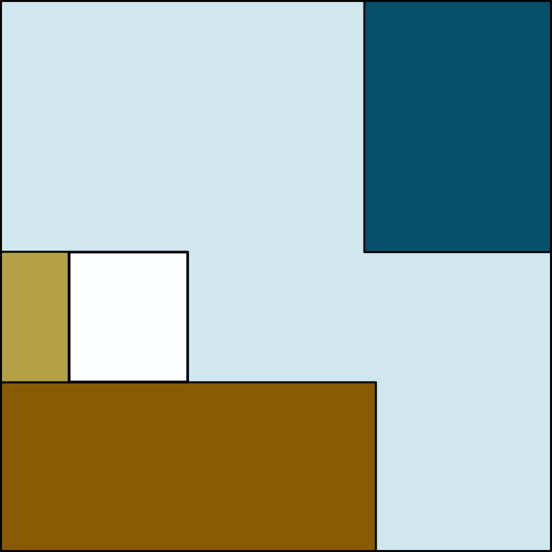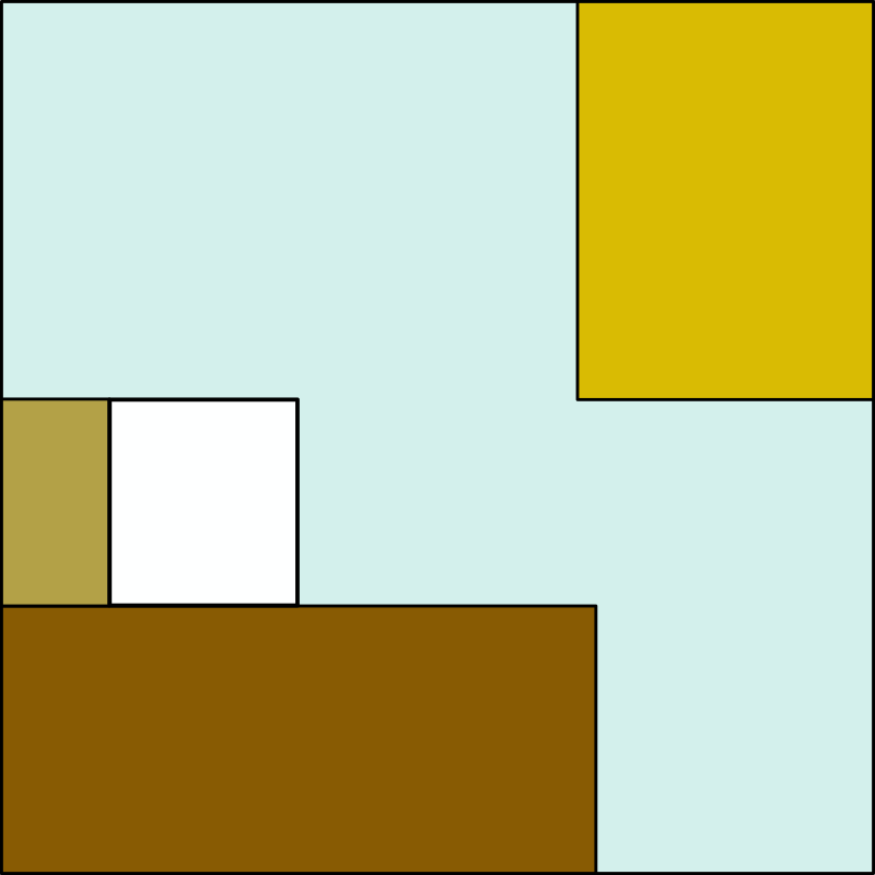 家具ではなく板張りの天井(水色)と、床の絨毯(赤)