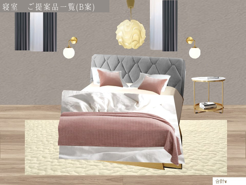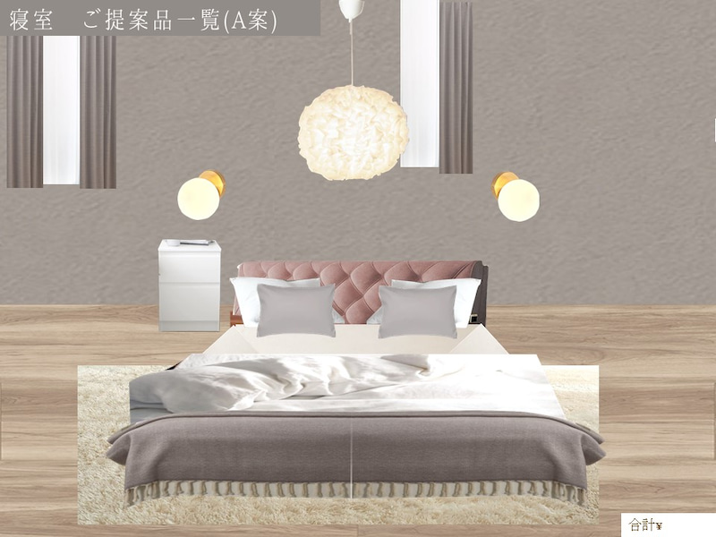 〇頂いた理想のイメージ画像のベッドルームを忠実に表現できるよう以下のような点に配慮しながら、コーディネートさせて頂きました。